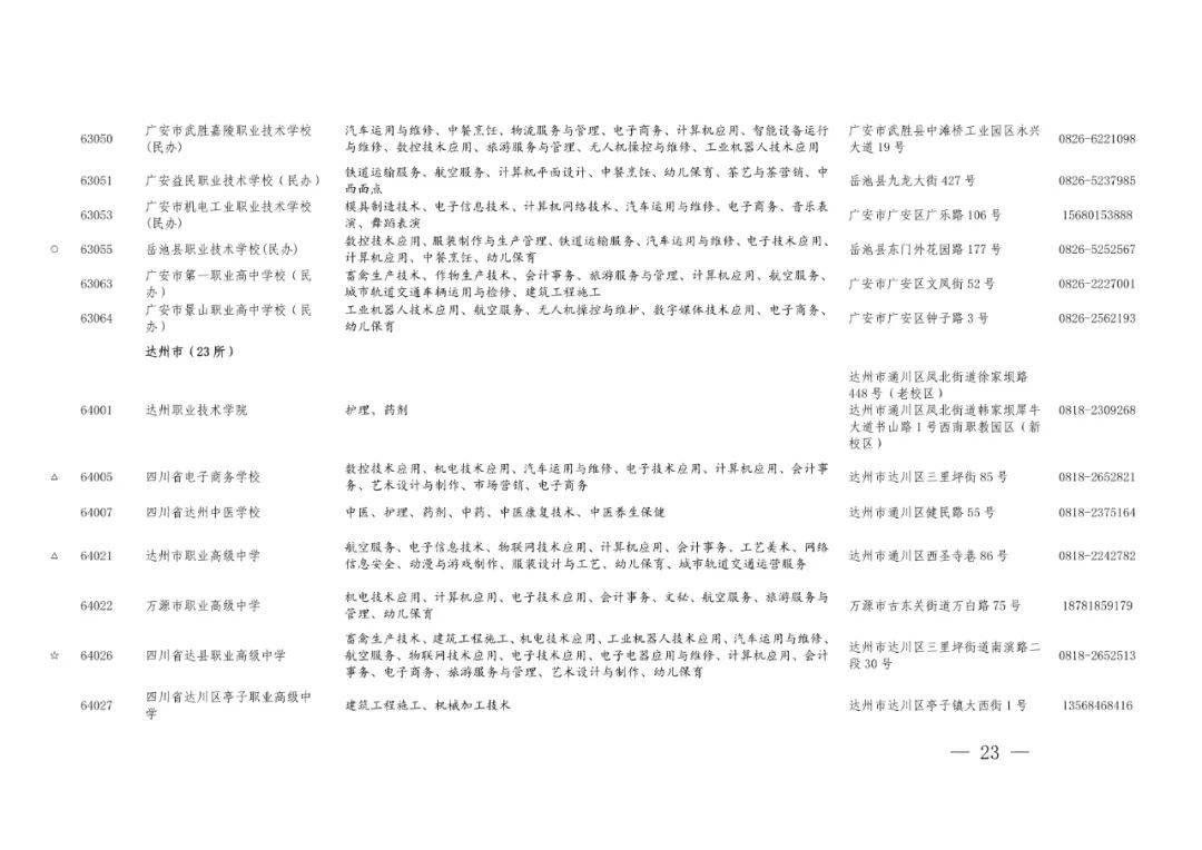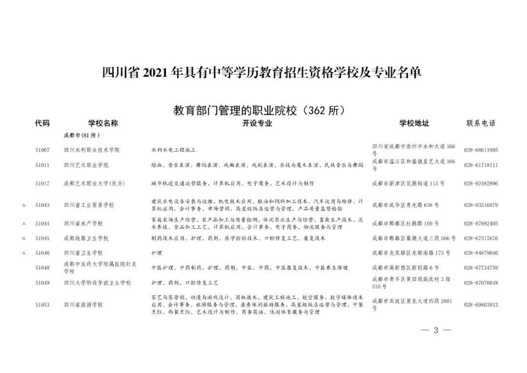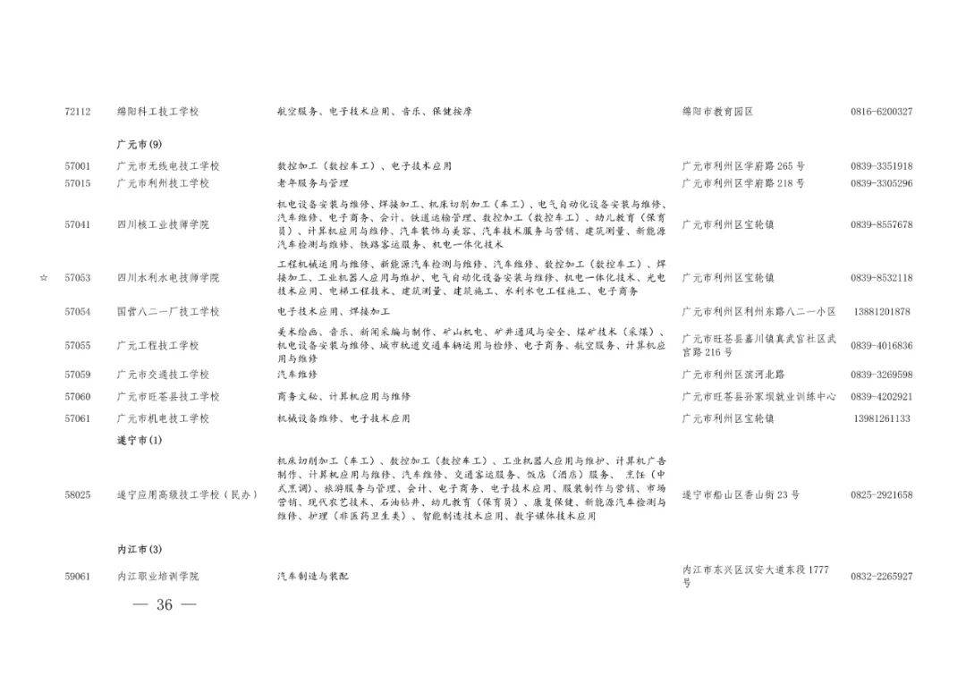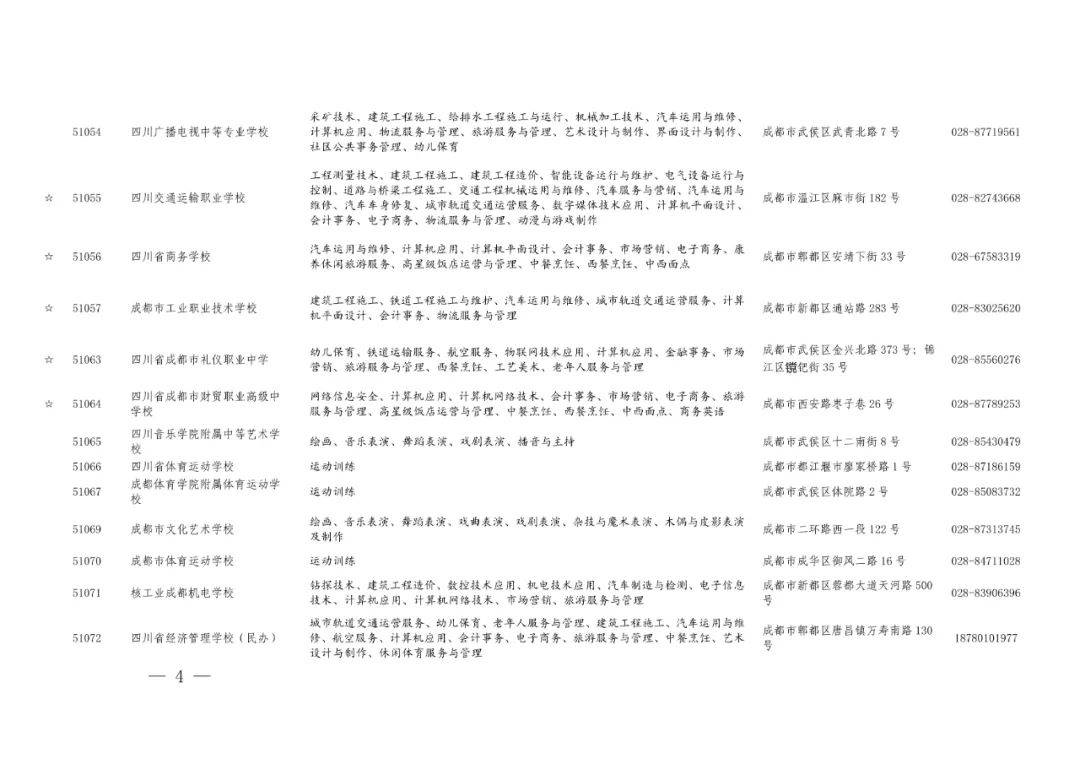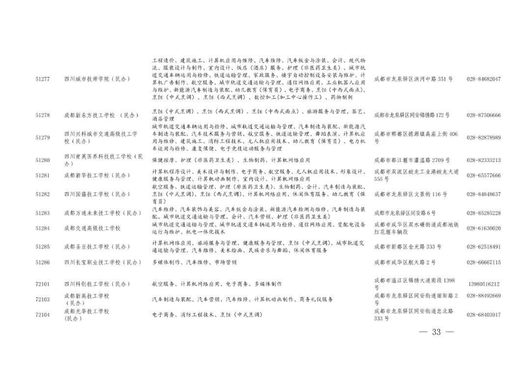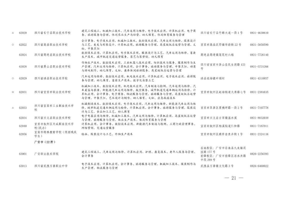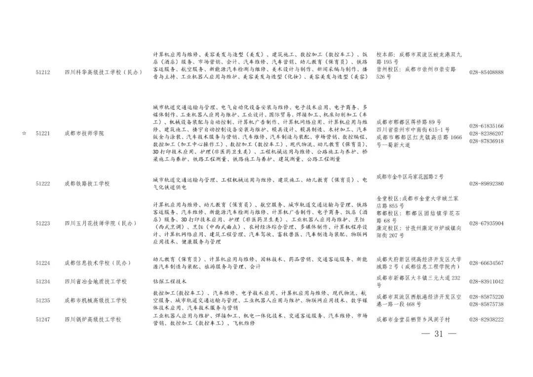 此前,四川省2021年具有中等职业学历教育招生资格学校有456所。其中,教育部门管理的职业学校362所,开设专业280个,开办专业点2975个;人力资源社会保障部门管理的技工院校94所(其中,技师学校20所,高级技工学校14所,普通技工学校60所),开设专业160个,开办专业点894个。