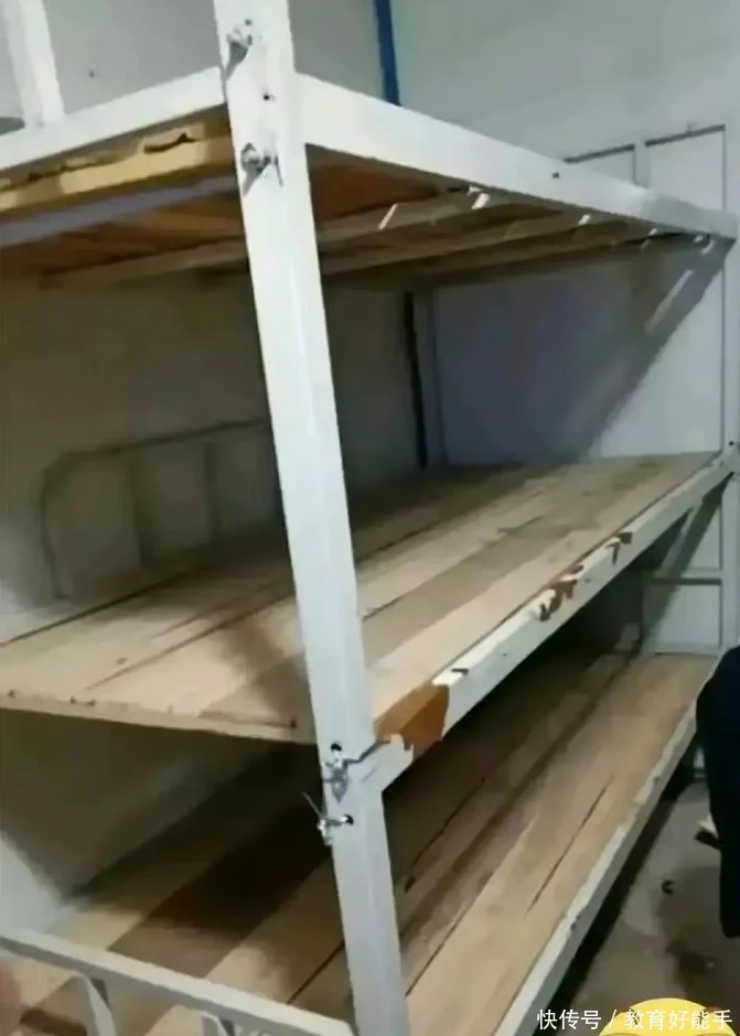 高中时期本身就是同学们身体发育的重要时期,如果住宿条件不好,可能会受到严重的影响,而下面这张图片就是网友爆出的中专学校的宿舍床铺。