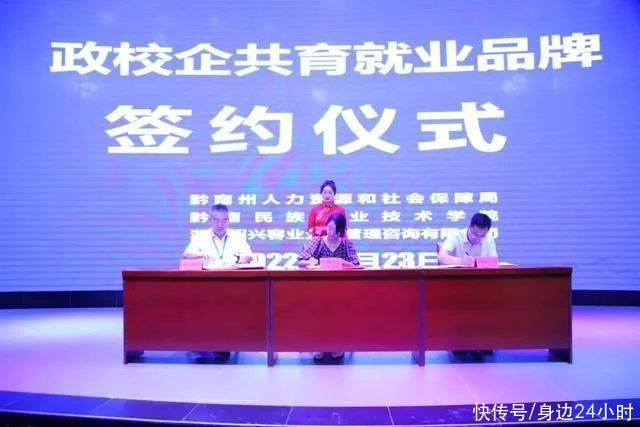 启动仪式上,就黔南大中专毕业生就业创业服务、岗位推荐、技能提升及服务站点建设等方面,黔南州人社局、黔南民族职业技术学校、广州广电城市服务集团股份有限公司、浙江绍兴容业企业管理咨询有限公司、深圳市聚心教育科技有限公司分别签署了《合作框架协议》,携手构建政校企合作政校合作校企合作,着力打造政校企共育就业品牌。