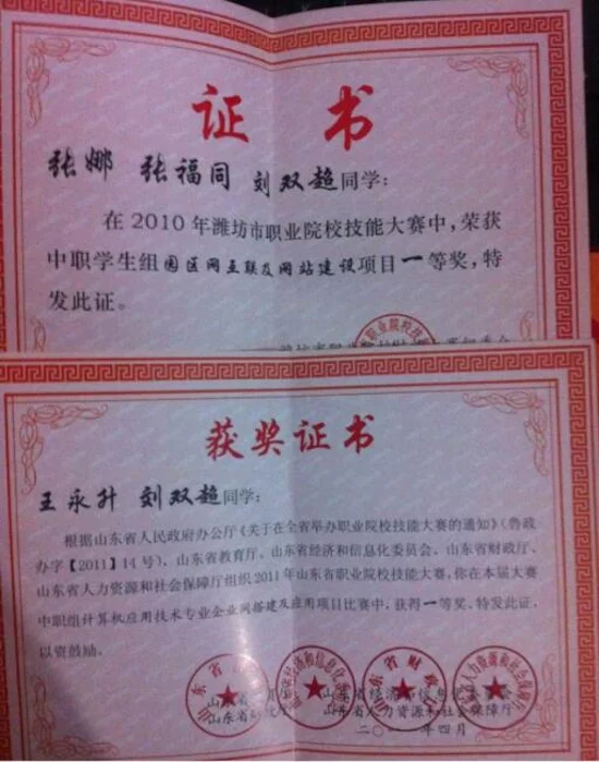 初入技能队时,刘双超很不适应,听老师讲的网络原理就像听天书。我的辅导老师先教我网络英语然后接触理论,当然从听天书到融会贯通这个过程极其难熬,但难关渡过以后,我突然发现对很多人来说是天书的网络,我竟然可以入门甚至驾轻就熟!刘双超对记者说道。他也凭借努力获得2010年园区网潍坊市一等奖、2011年园区网建设潍坊市一等奖、企业网搭建潍坊市一等奖、山东省网络搭建一等奖、2012年全国企业网搭建一等奖等荣誉。