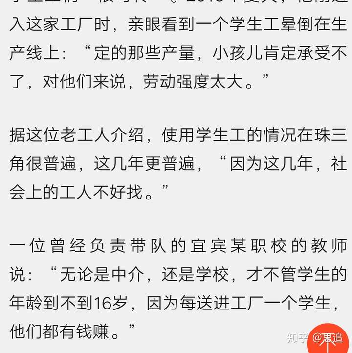 我很好奇,学校敢如此明目张胆地向工厂输送劳动力,真的合法吗?工厂如此高强度地压榨学生?真的不怕有关部门追查吗?如此黑暗的交易链条,为什么从未在公众眼中掀起任何波浪,这真的正常吗?