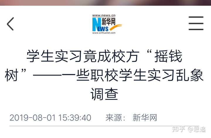 这样黑色交易链条能够存在十多年之久的原因我不想去随意猜测,但我知道这肯定是不正常的,我想代替这些十五六岁,正值美好岁月的学生说一些话,如果可以,希望有关部门彻查此类学校的领导,因为我不相信会有任何正常的实习会是如此地高强度。我希望这些遭受欺骗,压榨,被学校当成摇钱树的学生,还有家长,能够勇敢地站出来,把事实想公众,向媒体,向有关部门说出来,捍卫自己的权利。希望公众,我们这些知晓这件事情的人,能够让更多的人知晓这件事情,无论是同学,朋友,或是媒体,曝光他们,曝光这种灰色交易,曝光学校和工厂的交易链条。