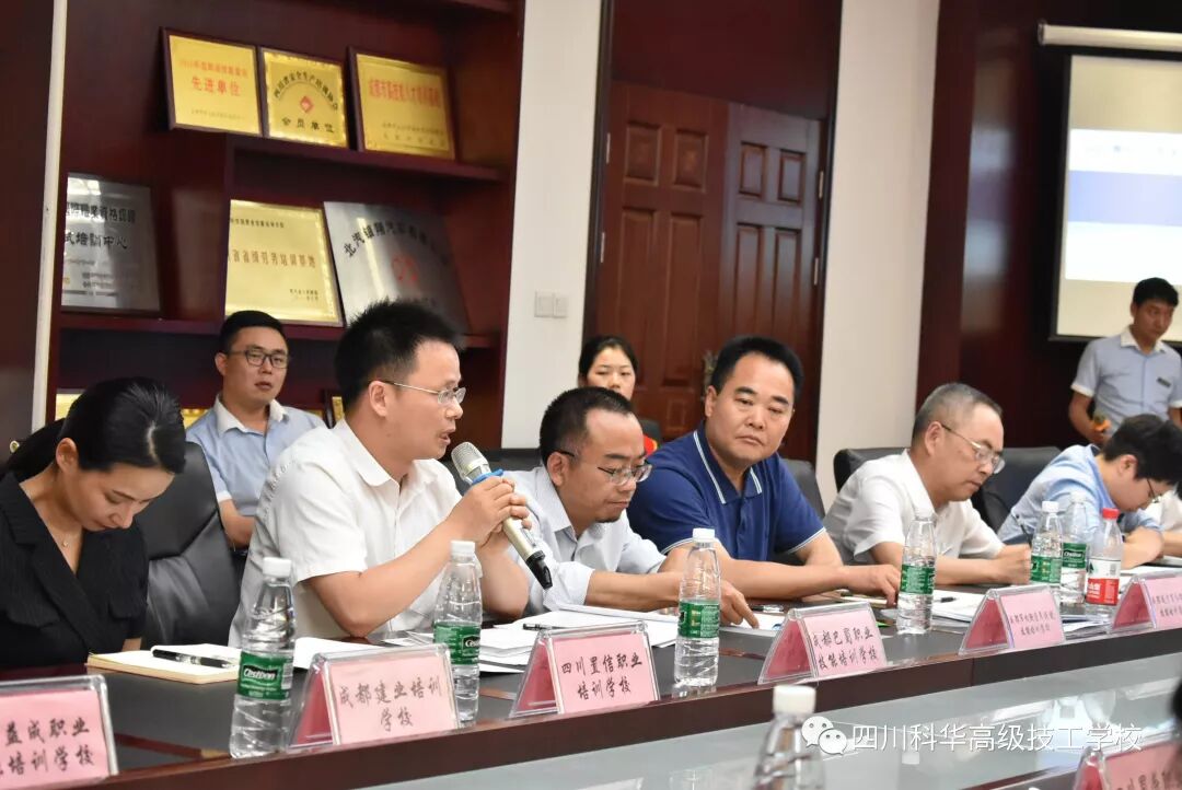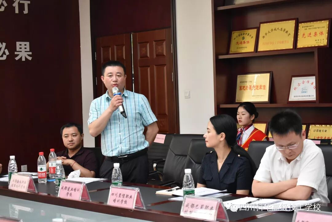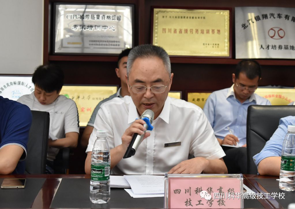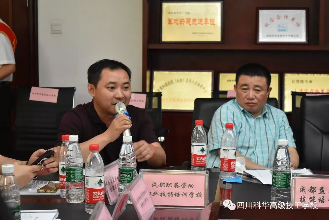 成都成才商务职业技能培训学校范俊祥校长在会议中提到在办学育人的过程中还应明确学校定位,并就本校的办学模式与在场嘉宾及领导做了分享和交流,他说到未来职业教育的发展趋势是与企业紧密相连的,科华具有前瞻性的办学理念,将校区建在工业区的模式,更方便学校为企业输送人才。