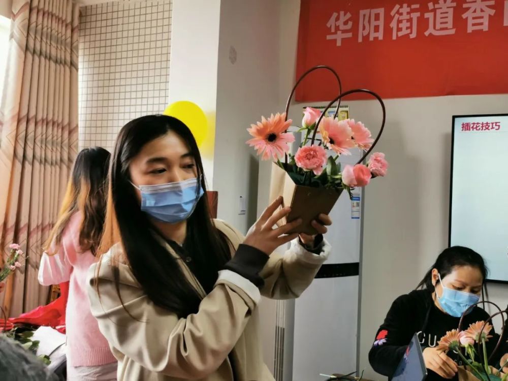 参加此次插花培训的李女士手捧自己制作的鲜花手袋说,活动不仅让她收获了技艺,还收获了美好的感受和美丽的心情。