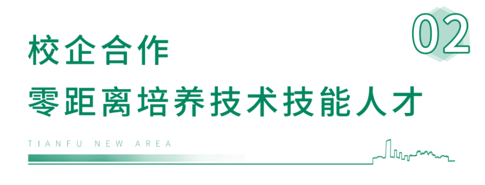 天府职校依托校企服务平台,把学校搬进园区,把课堂设在厂区,零距离为产业园区培养技术技能人才,每个专业至少与一家规模企业深度合作,每个专业与多家企业建立合作关系。学校先后与70余家企业实现了人才培养、专业建设、教师培养发展、课题申报、科研建设等方面的深度合作,在员工培训、企业用人需求、科技成果转化、业务拓展、品牌推广等方面真正实现了校企双赢。