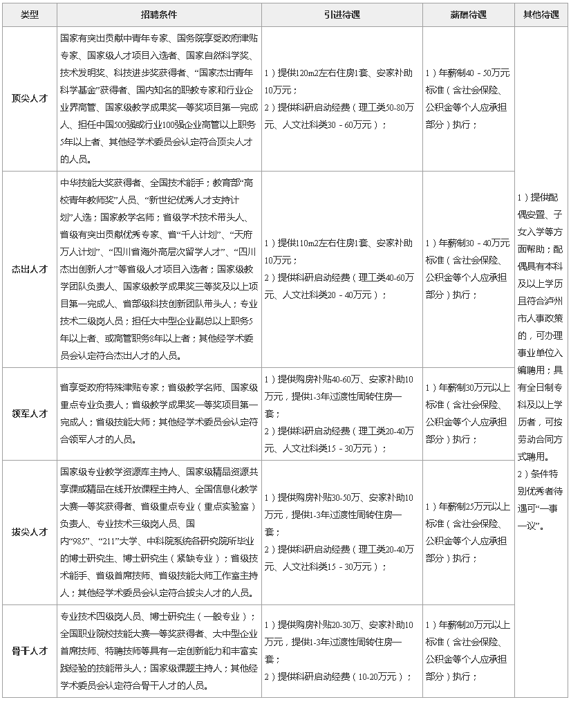 3.泸州职业技术学校2019年引进高层次人才条件和待遇(附后)