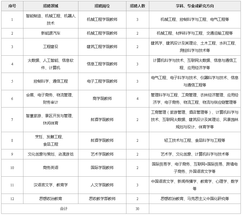 具体岗位及条件见《泸州职业技术学校2019年高层次人才引进需求信息表》(附件1)。