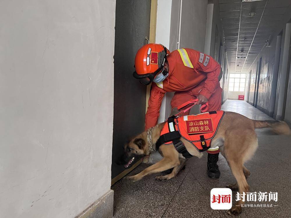 当天上午9时00分,凉山森林消防支队西昌大队四中队接到命令后,立即组成尖兵突击小组15人携带搜救犬和各种救援装备,赶赴凉山州职业技术学校开展搜救,搜救犬对受灾教学楼楼进行搜救,在楼顶发现一名被困人员,因伤员腿部受伤无法行动,且楼内道路受阻,指挥员立即依据现场环境判断运用斜向救援技术对伤员进行转移,经过5分钟的现场救援,营救组合力将被困人员成功救出,移交给医疗部门进行救治。