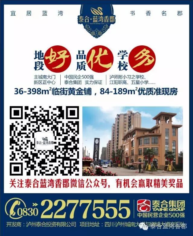 泰合·蓝湾香郡项目地址:泸州城南大道右侧(过长江大桥直行至红绿灯路口)