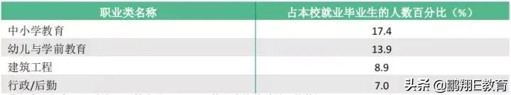 来源:南充职业技术学校2020届毕业生就业质量年度报告 毕业流向 2020届毕业生就业量较大的职业类为中小学教育(17.4%)、幼儿与学前教育(17.4%)、建筑工程(8.9%)、行政/后勤(7.0%)。