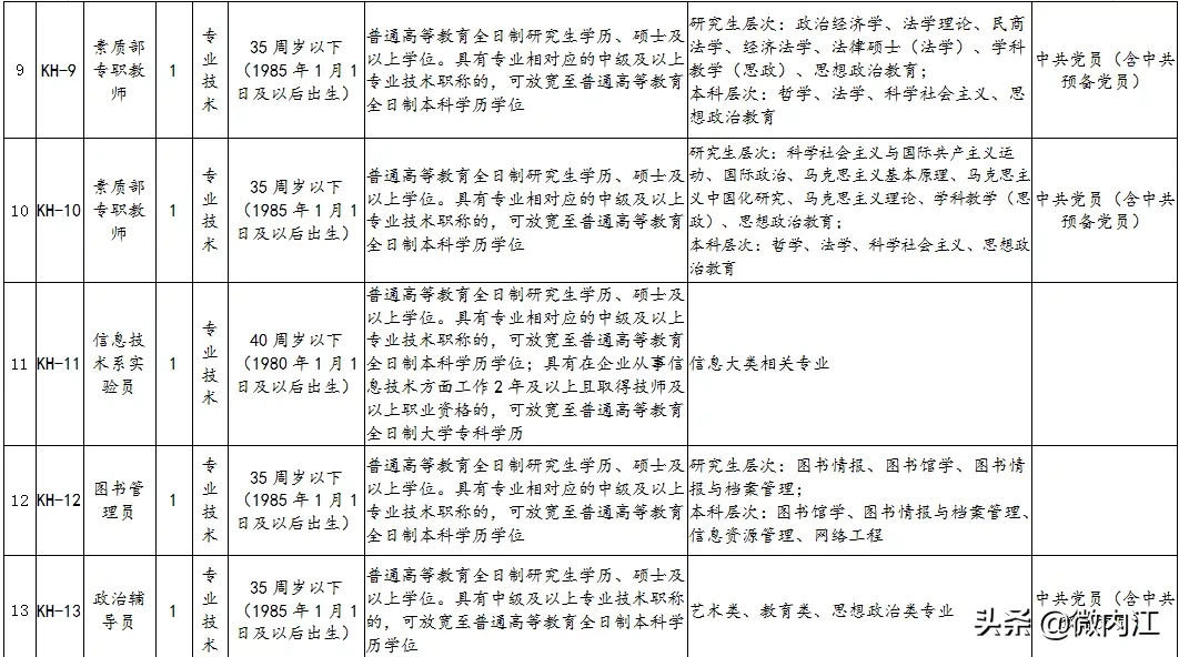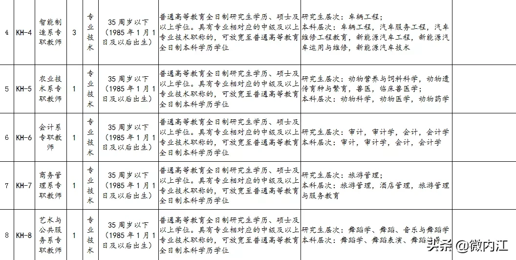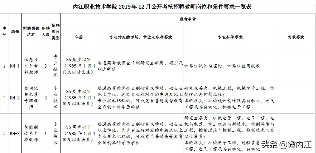 2.内江职业技术学校2019年12月公开考核招聘教师及工作人员岗位和条件要求一览表
