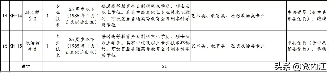岗位类型及名额:专业技术岗21名