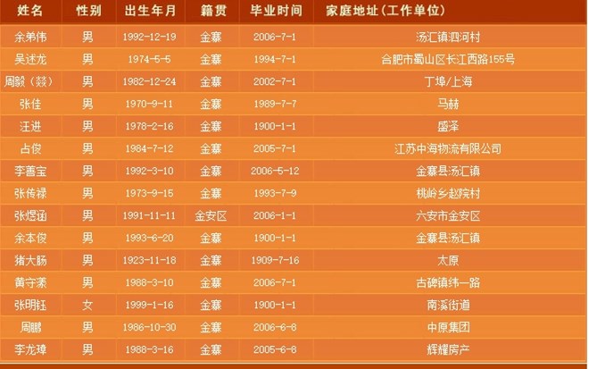 原标题:金寨一学校官网出错猪大肠位列校友名单