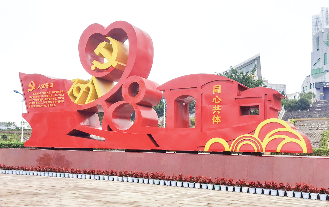 据介绍,该雕塑作品由学校师生结合自己的专业所长,从设计、施工、焊接、喷绘到完善党建文化广场主题景观,均由师生共同完成,在制作过程中学党史、感党恩、受教育。