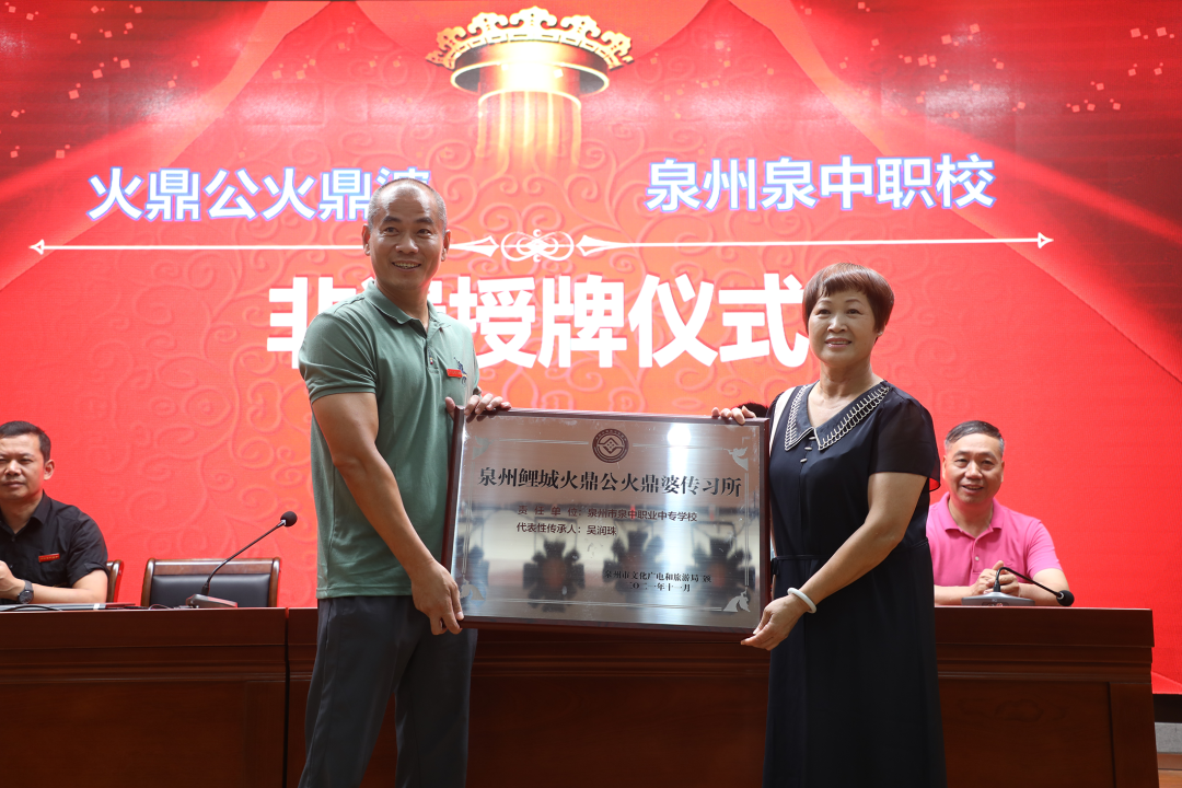 泉州鲤城火鼎公火鼎婆省级非遗传承人吴润珠老师为学校授牌泉州鲤城火鼎公火鼎婆传习所