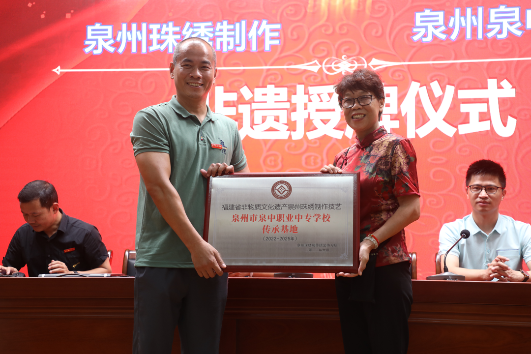 今年,我校被授予泉州鲤城火鼎公火鼎婆传习所,鲤城区陈克忍珠绣制作工作室被授予泉州珠绣制作技艺传习所,我校也被授予泉州珠绣制作技艺传承基地,这将进一步促进非遗传承发展。