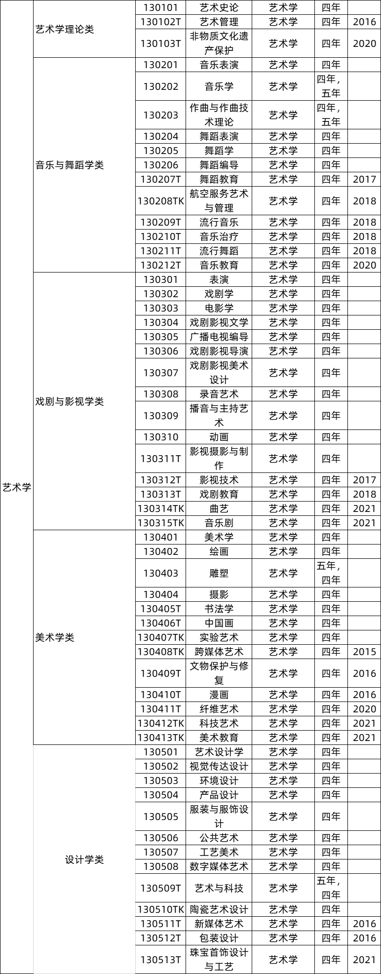 艺术学门类下有艺术学理论、音乐与舞蹈学、戏剧与影视学、美术学、设计学等几类专业。