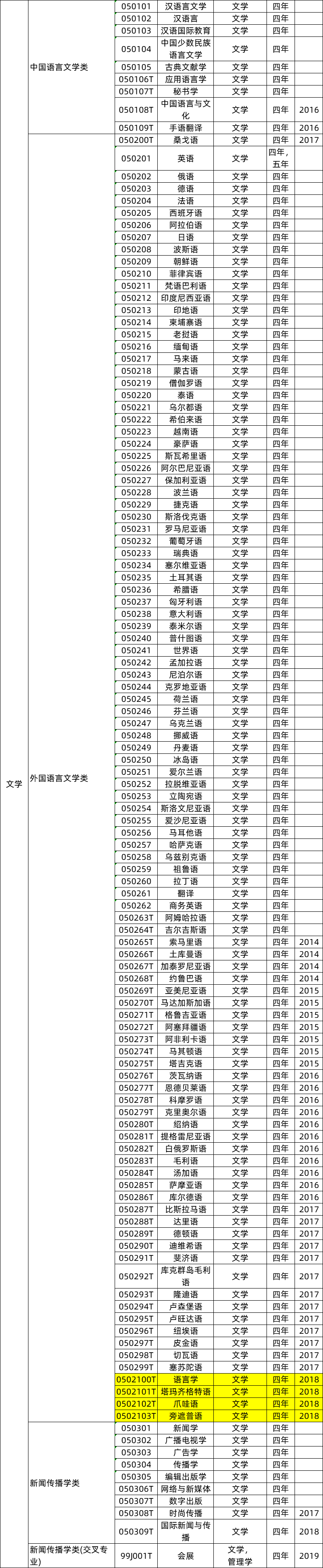 文学门类下有中国语言文学、外国语言文学、新闻传播学等几类专业。