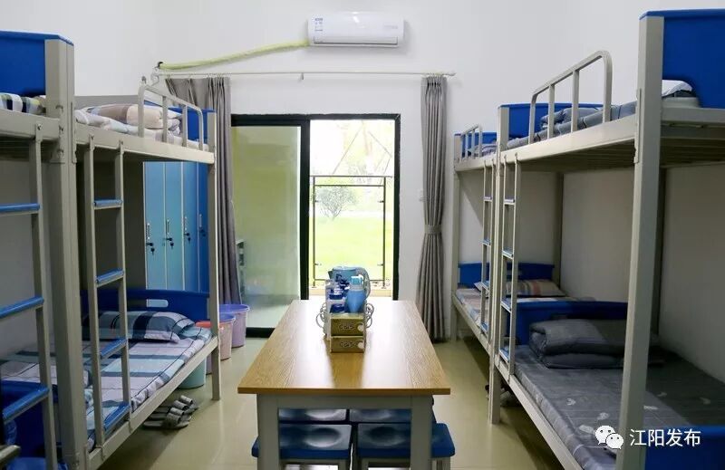 每间8人,室内统一设有空调、热水器、淋浴、桌凳、床、柜子等生活设备,配有独立的阳台、卫生间、洗漱间,以及篮球场、羽毛球场、乒乓球场等运动设施。下一步,还将设警务室,进一步完善工会活动中心、食堂、超市、洗衣房等生活配套。