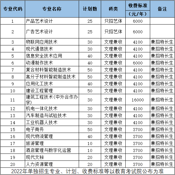 登录我校招生网(http://zs.mypt.edu.cn)上的单独招生报名系统,确定所报考学校的专业志愿。考试时间:2022年4月2日上午9:00-11:30进行文化考试,下午进行技能综合测试。