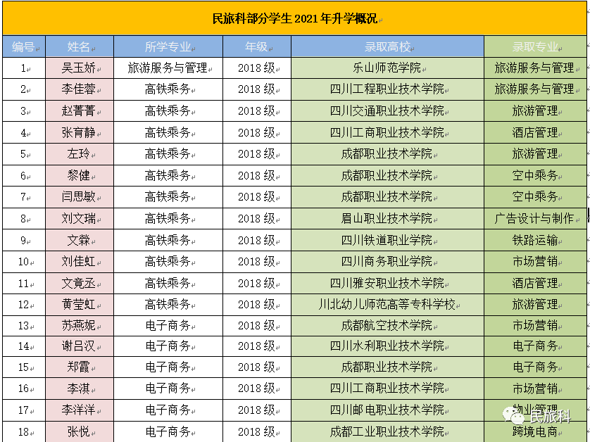 民旅科部分学生2021年升学情况