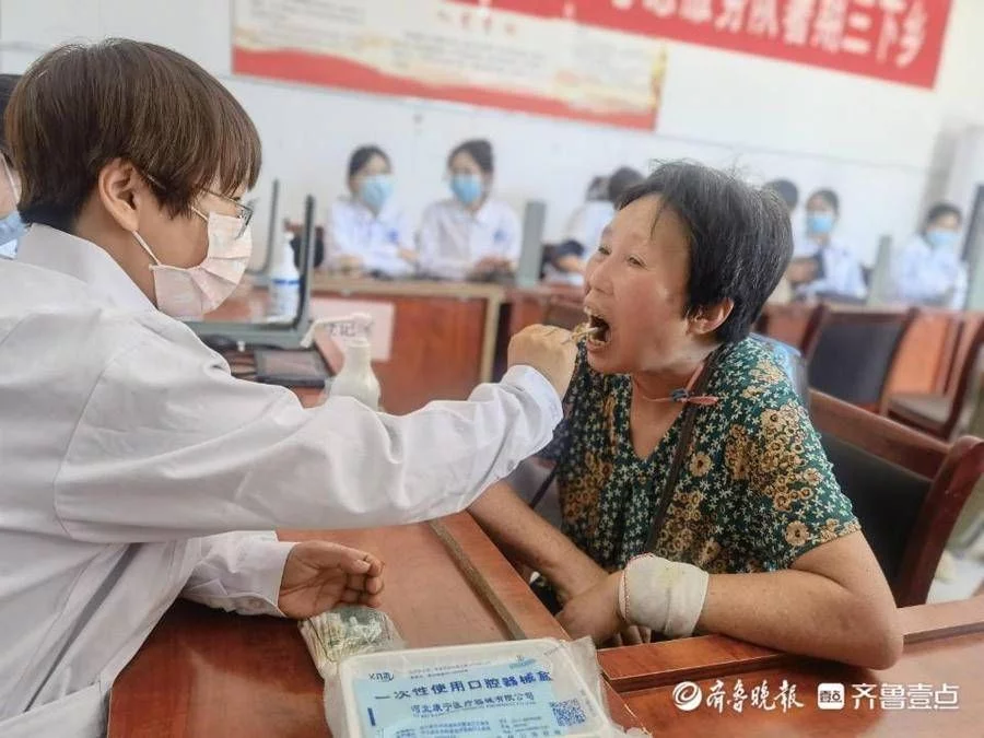 义诊现场,志愿者设置了血压测量和口腔检查等服务咨询点,为村民现场量血压、检查口腔等,耐心解疑答惑、测量健康指标,提出日常预防、保健方案及治疗建议,对村民进行健康监测,加强村民对疾病和慢性病的认识和防范,同时提升护理、口腔等专业学生的理论实操技能。