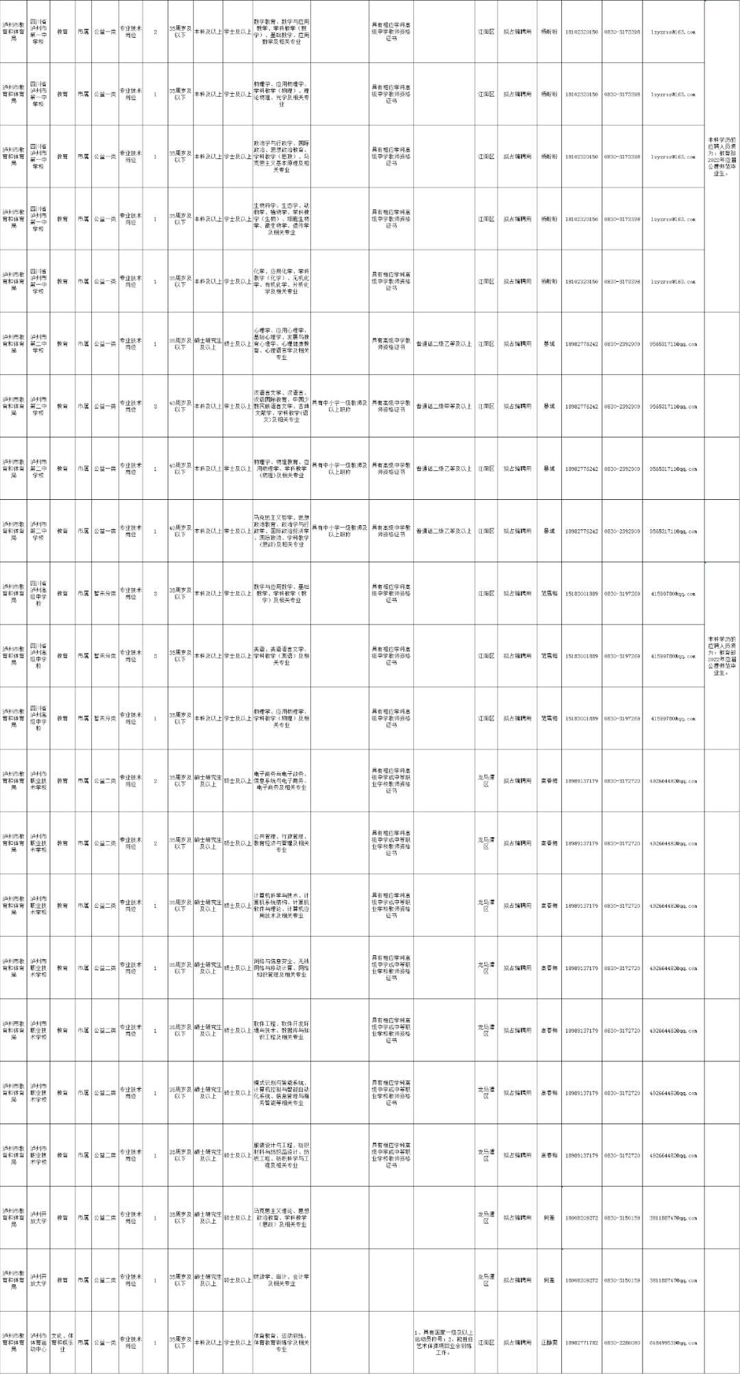 泸州一批学校招老师了!