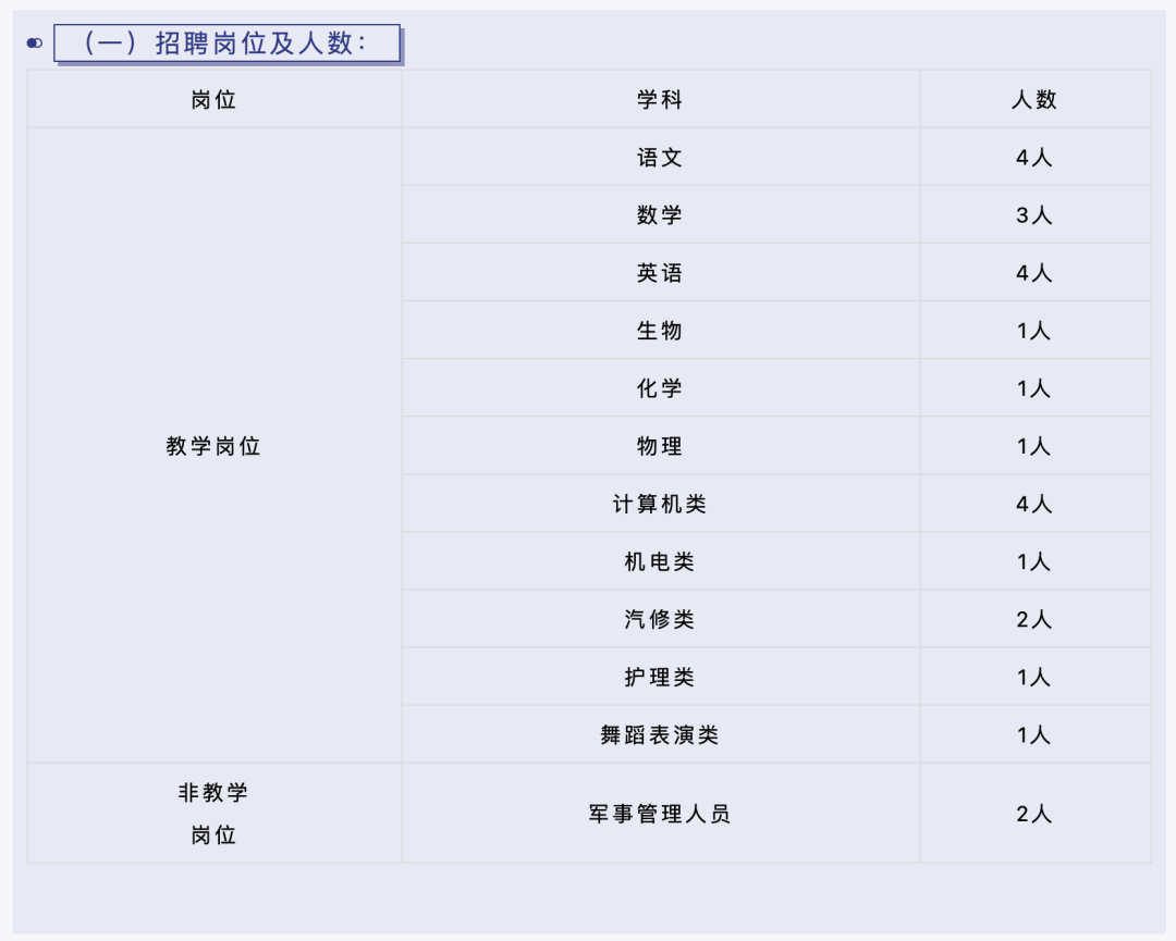 1.教学岗位:教学岗位除需具备以上基本条件外,还需具备的其他条件详见附件《绵阳市安州区高级职业中学面向社会公开自主考核招聘教师情况一览表》