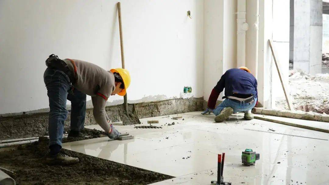 ▲地砖施工