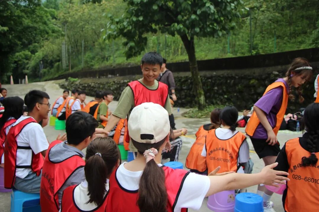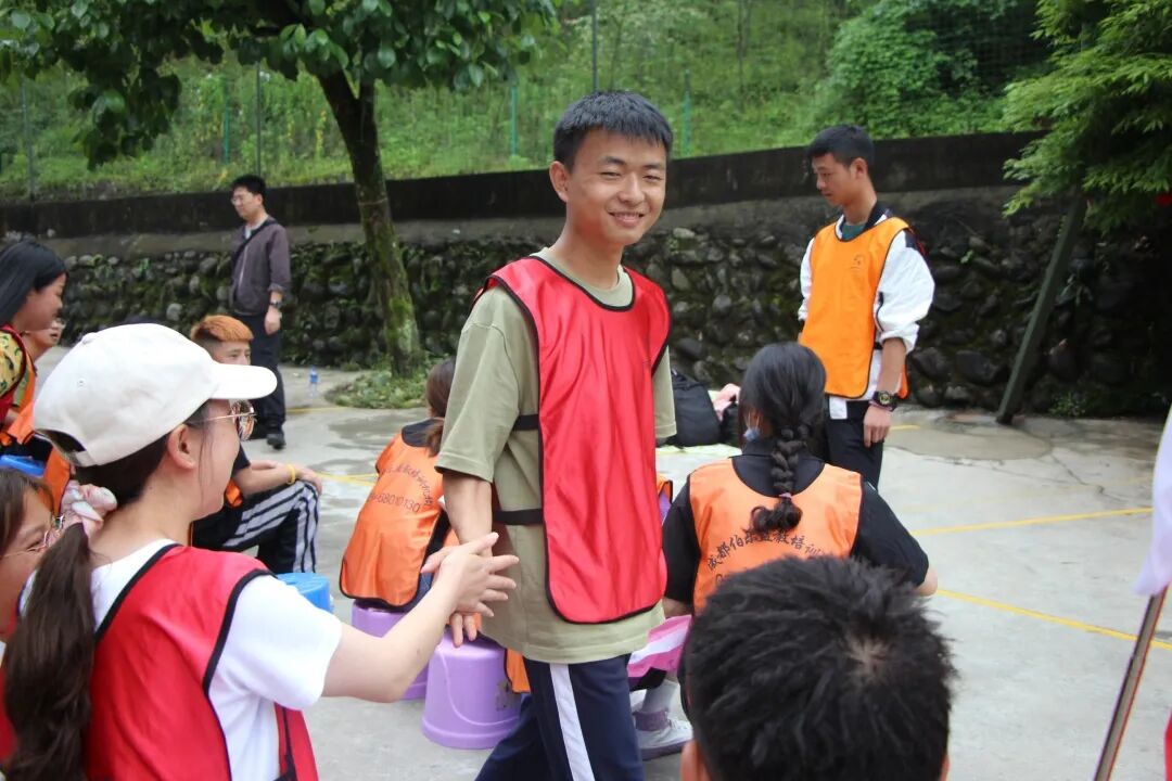 水到渠成:学生6人一组,把胶管分发到小组成员手上,每人一节,把乒乓球从队伍的开头传到结尾,手不可以触碰到球,选手也不可以发出声音,不可以让球落到地上,也不能让它逆行,最后球落到杯子上就算挑战成功了。