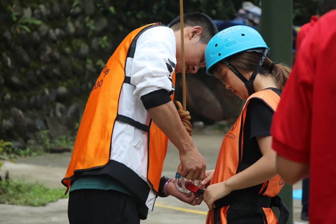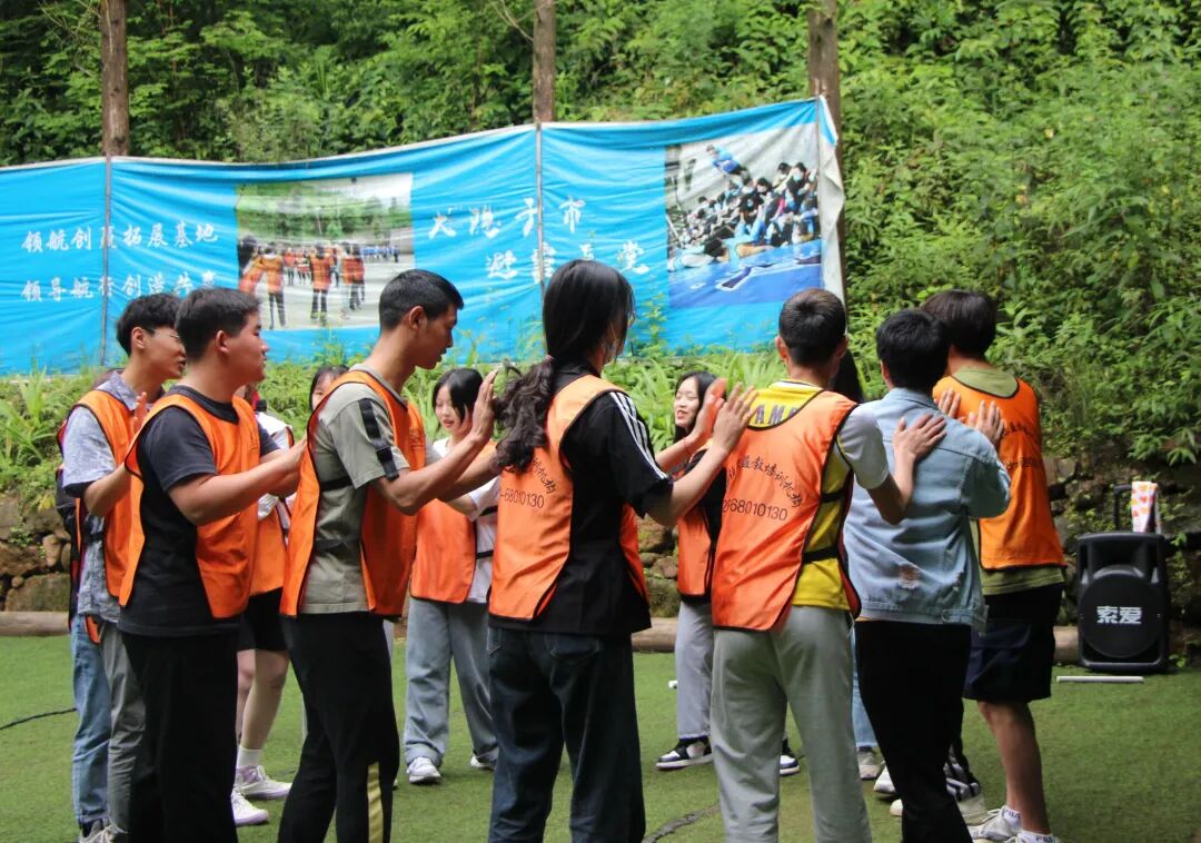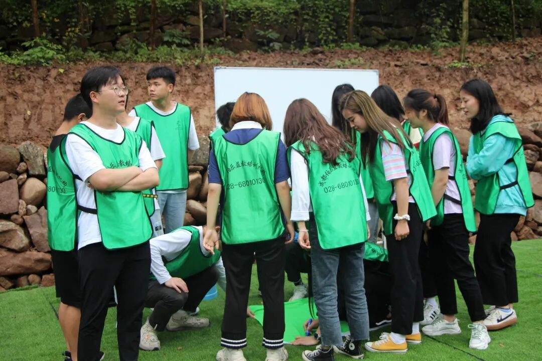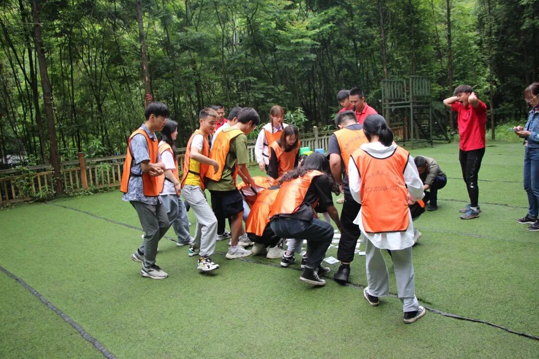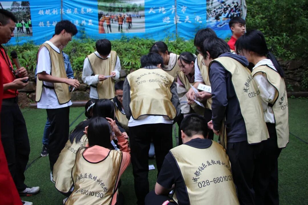 小队除一名队员外,其他所有队员佩戴眼罩。在没有佩戴眼罩队员非语言指挥的情况下,小队全员需要走过一段路程,越过一些障碍,到达指定地点获取指定物品。