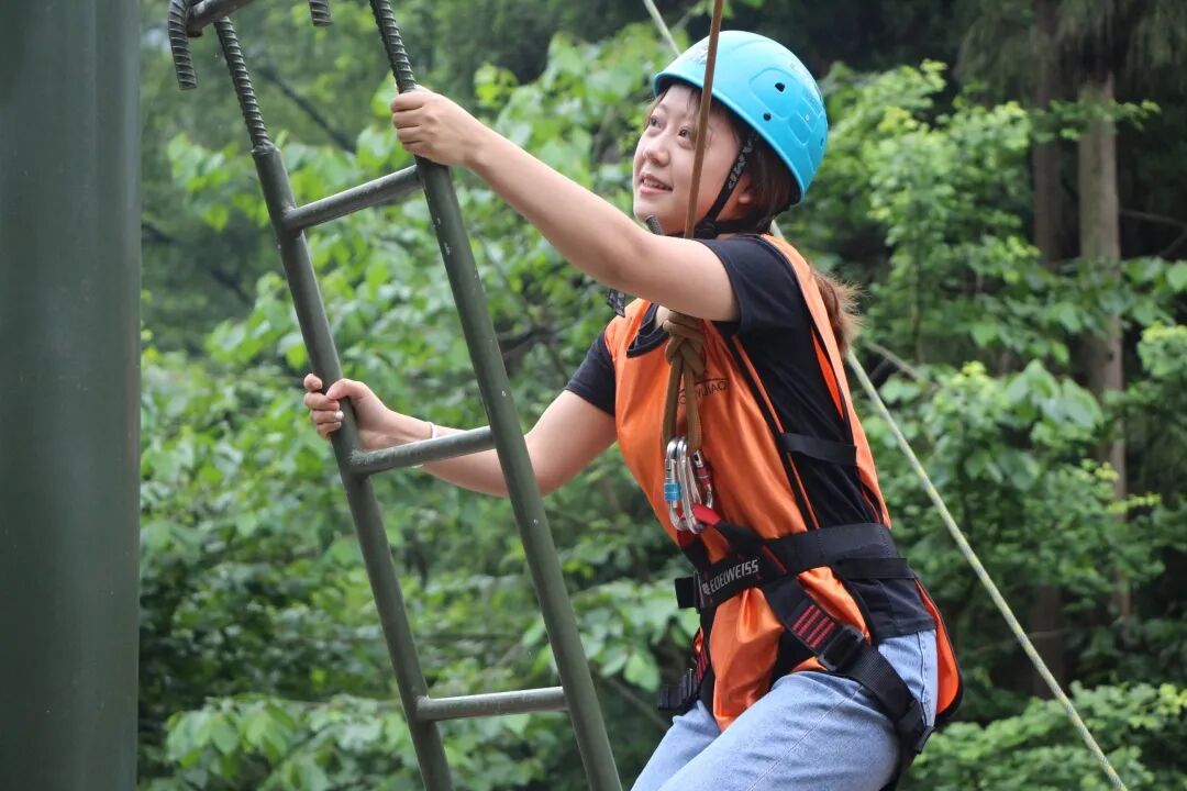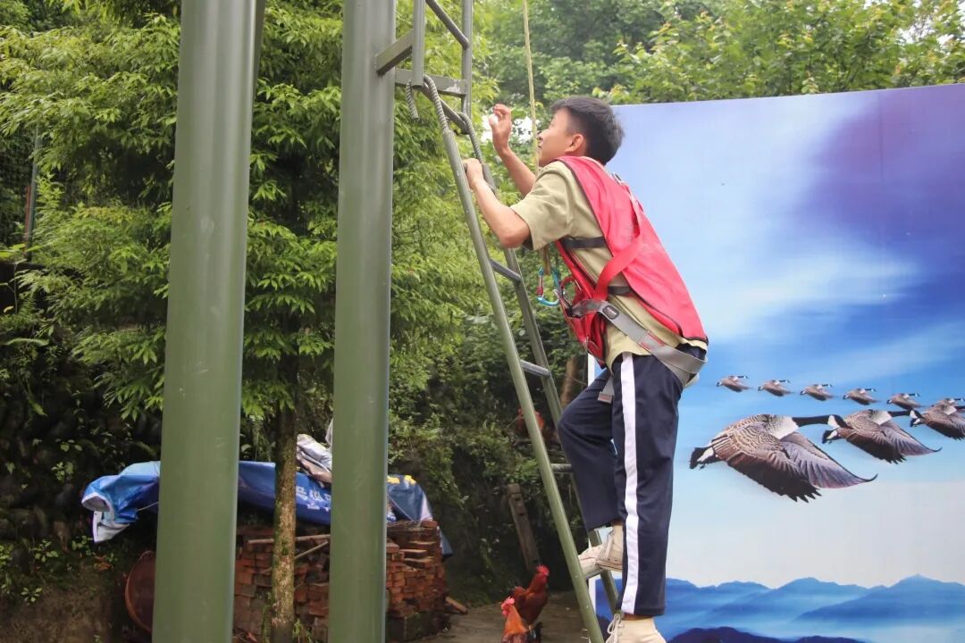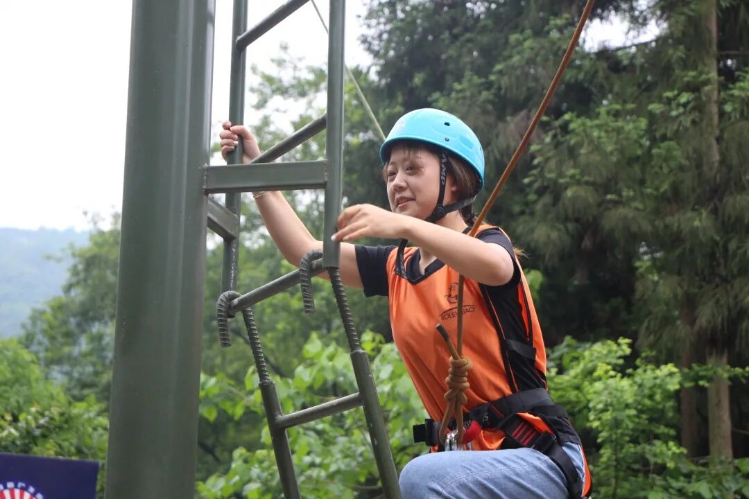 断桥是挑战自我、超越自我的个人项目。要求队员在离地面8米高的断桥一侧跃到另一侧,再跳回来。
