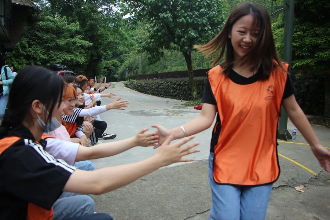 激情节拍:全员参与。所有队员围成一个圈,脸朝内侧,然后伸出双手,用击掌的方式喊出我们是最棒的。双手拍左右队友一下肩膀,数一个数,喊出第一个字;拍两下肩膀,数两个数,说出两个字;以此类推;一面鼓掌一面喊出队训,一直到最后把我们是最棒的六个字喊完,最后所有人喊一个耶结束。
