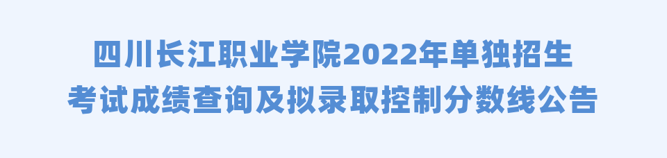 三、根据《四川省高等教育招生考试委员会、四川省教育厅关于做好2022年普通高等学校高职教育单独招生工作的通知》川招考委【2022】3号规定。结合《四川长江职业学校2022年单独招生章程》,经学校单独招生考试领导小组研究审定,我院单独招生考试按成绩总分(文化+综合素质面试或职业技能测试)排序录取,拟划定普高类、中职类录取分数控制线如下: