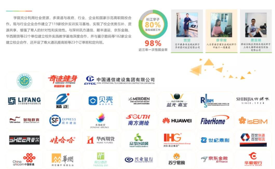 四川长江职业学校是经四川省人民政府批准、教育部备案,具有港资背景的全日制专科层次普通高等院校,是四川省首批现代学徒制试点单位、国家教育部第三批现代学徒制试点单位,四川省首届文明校园,现有在校学生逾万人。毕业生颁发教育部统一印制、电子注册的普通高校毕业证书。