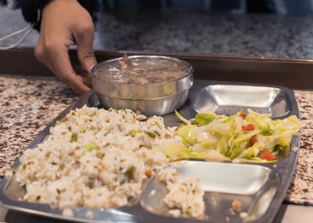 食堂为师生们暖心准备了热气腾腾的羊肉汤,香喷喷的羊肉、清香的萝卜、碧绿的葱花,连干碟蘸料都贴心准备好了,是这个冬天暖暖甜甜幸福的味道。