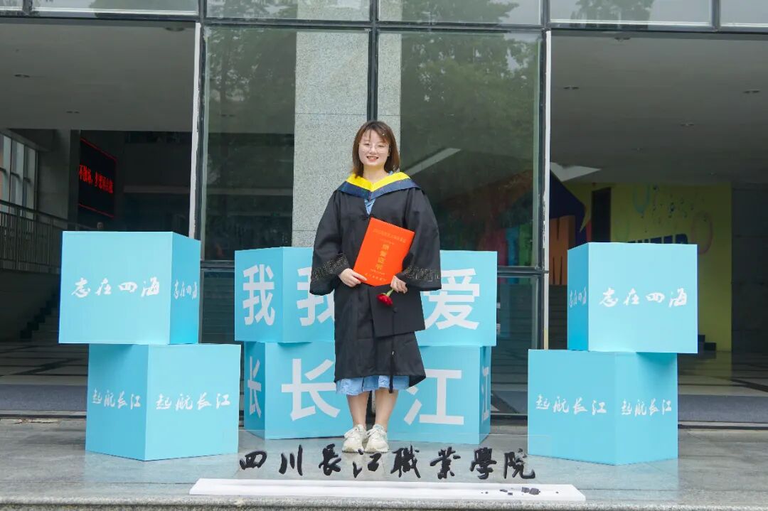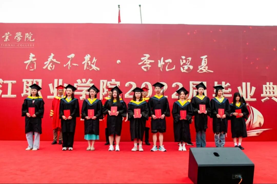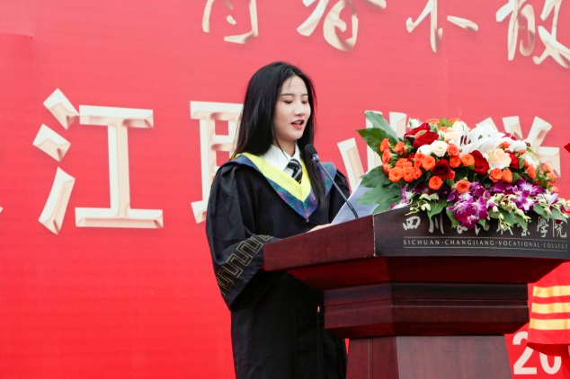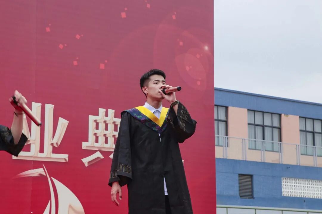 商贸与融媒体学校2022届学生洪小惠代表毕业生发言,她在发言中回忆了在长江学习生活的点点滴滴,她说:花有重开日,人无再少年,趁着青春,趁着年轻,要在大学里面发光发热,努力去成为一个更好的自己。毕业是我们的起点,并不是我们的终点,愿我们此去前程似锦,再相逢依旧如故。