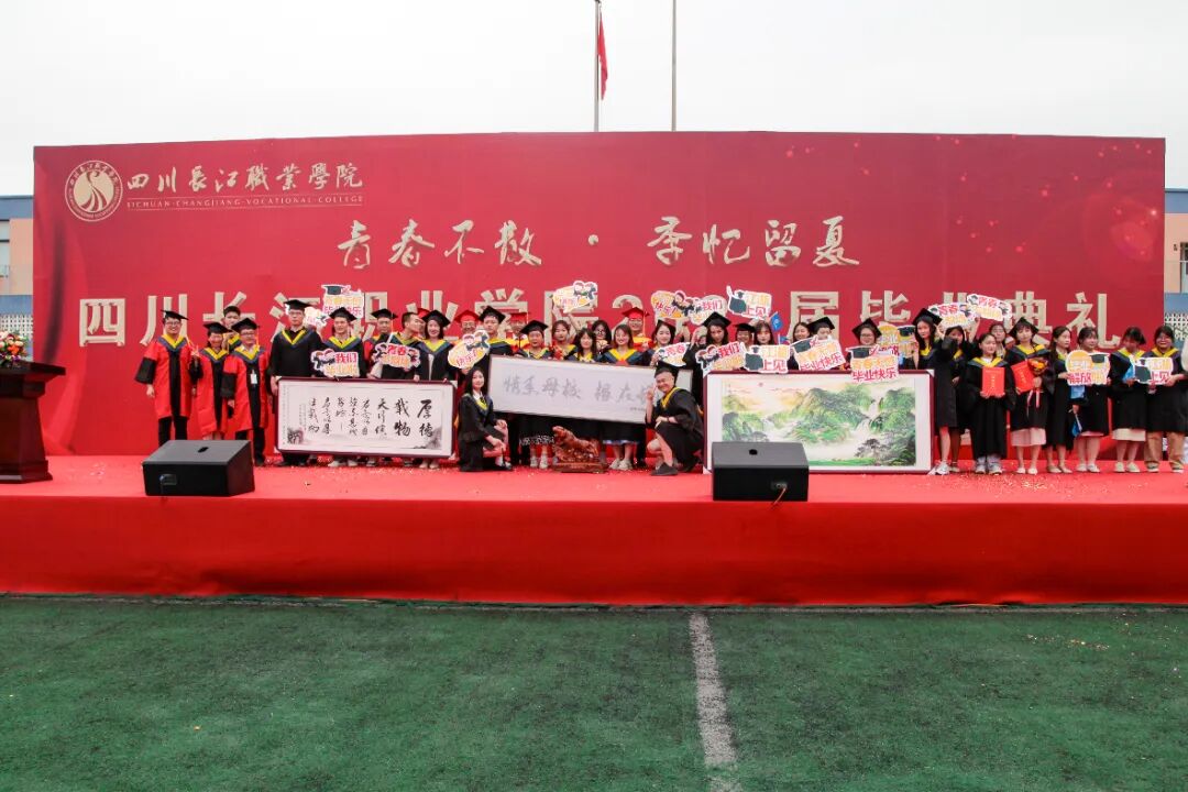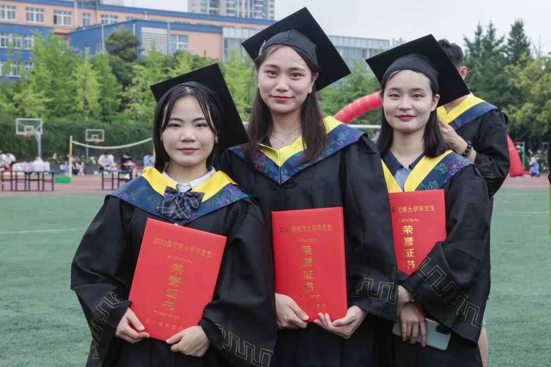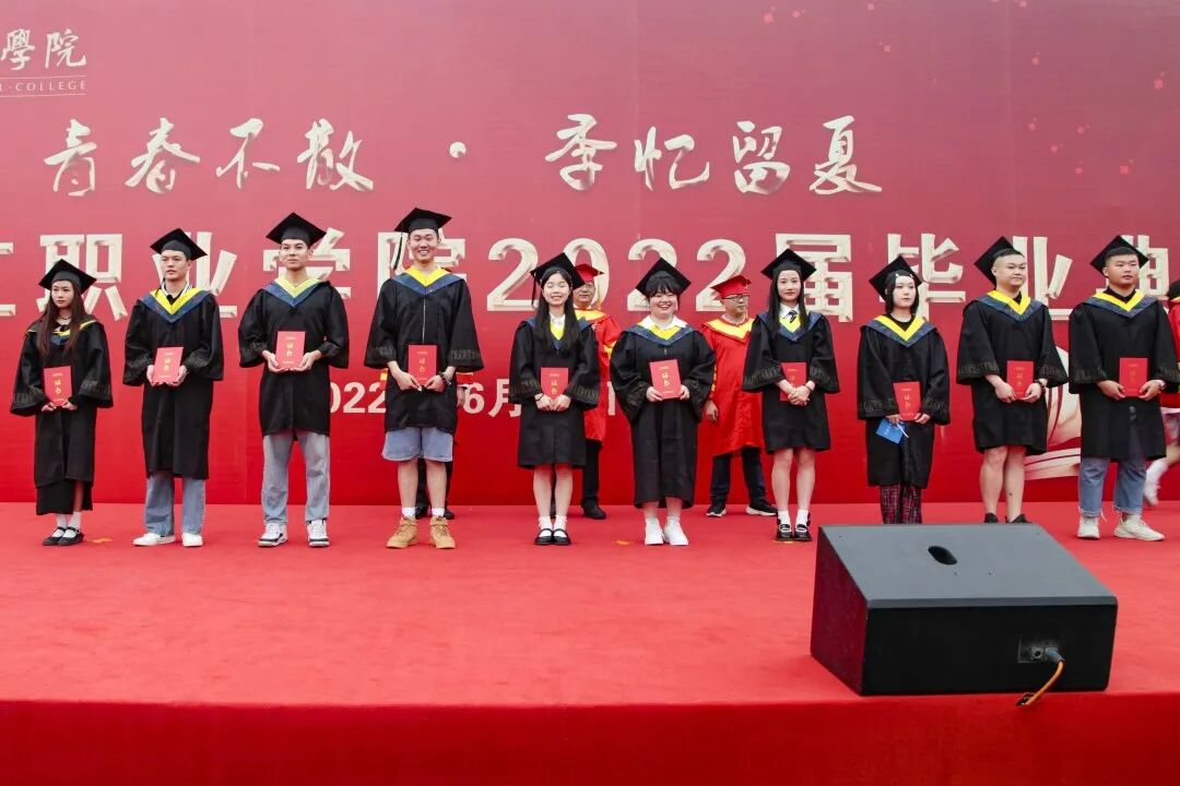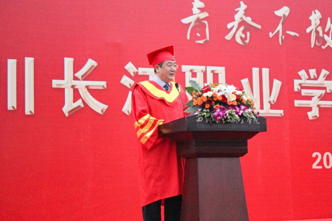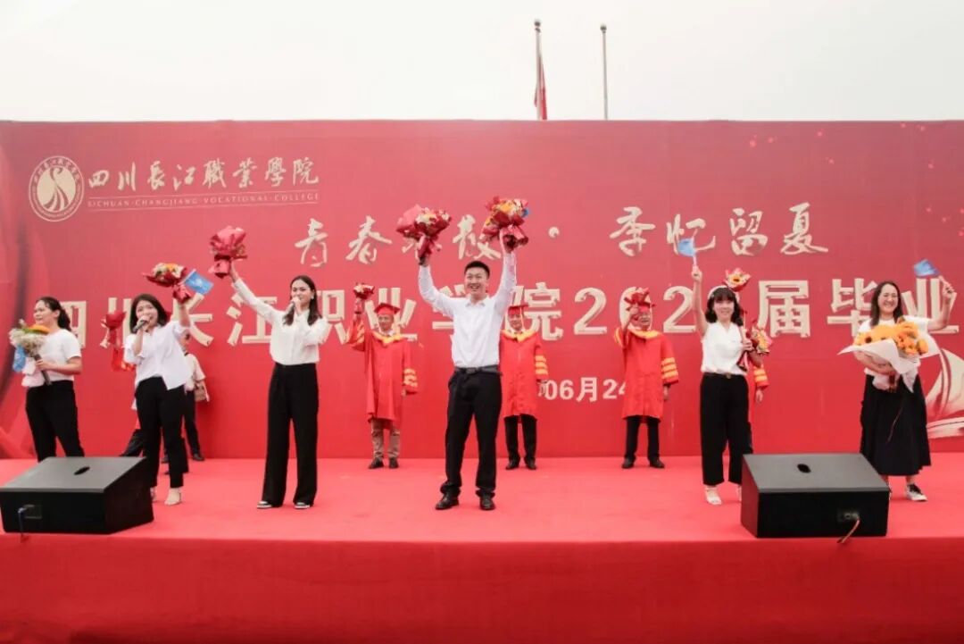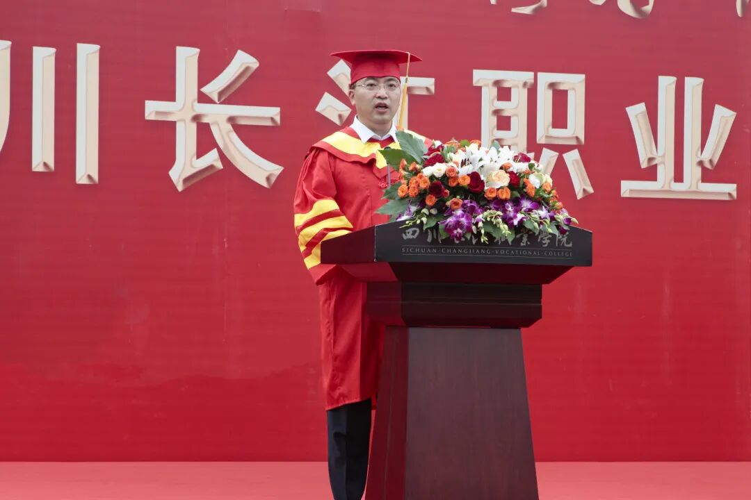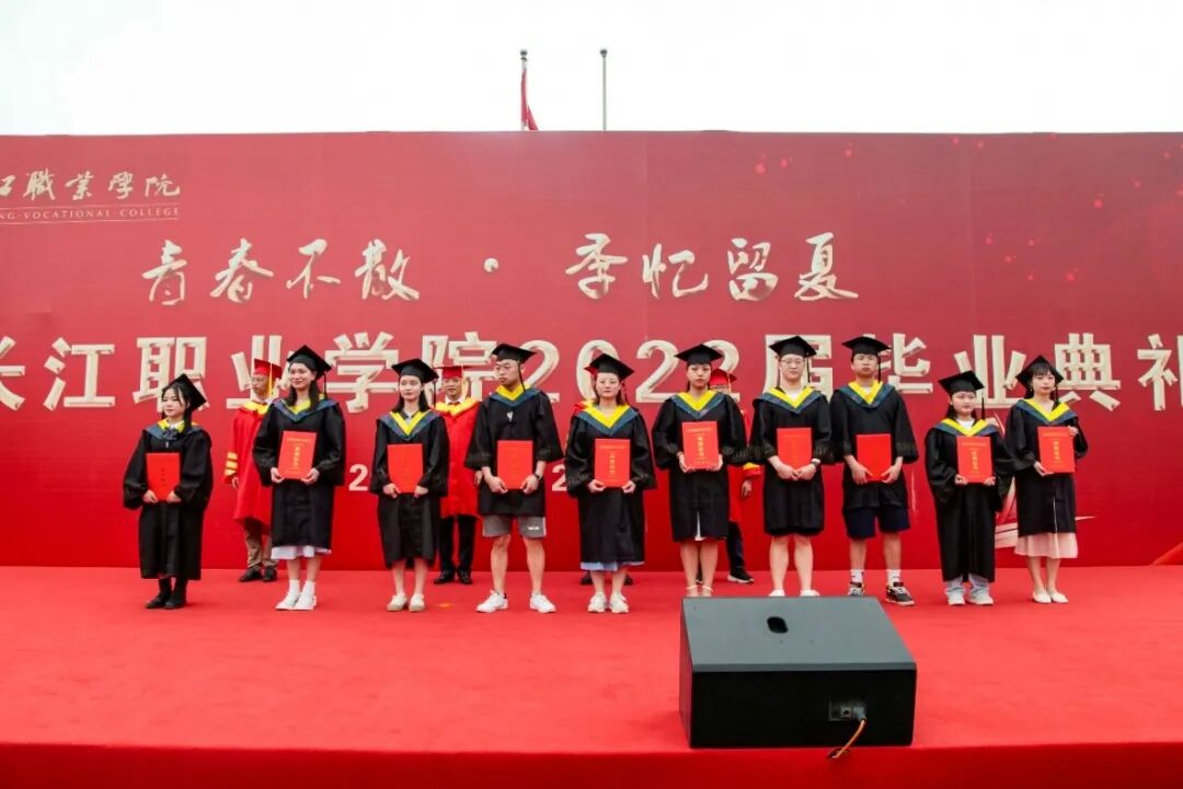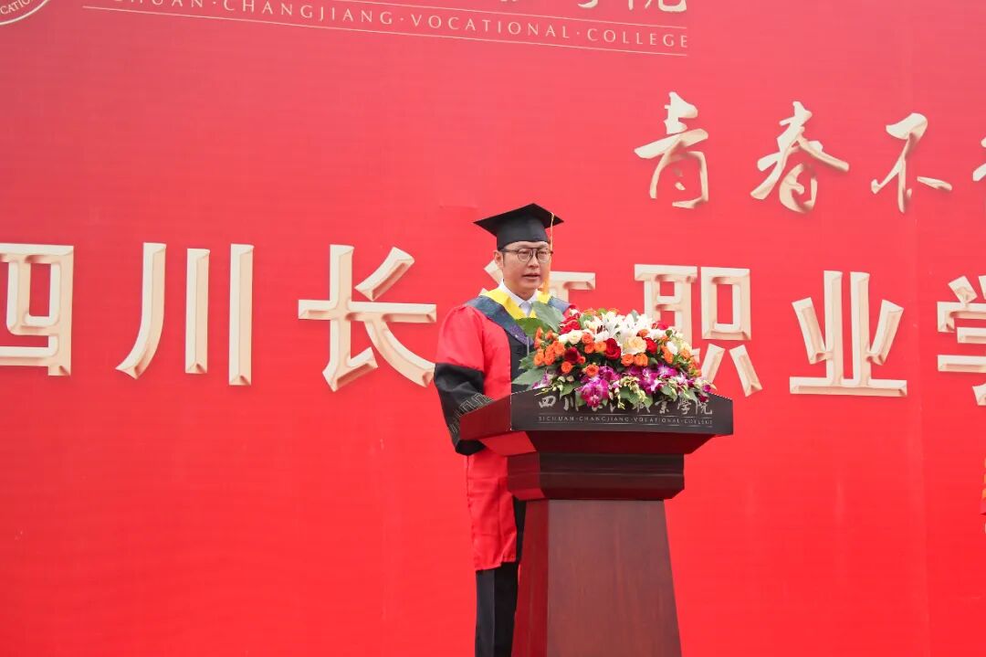党委书记何志州宣读《四川长江职业学校关于表彰2022届省级、校级优秀大学毕业生的决定》,党委书记何志州、校长助理潘刚、金昂为优秀大学毕业生颁发荣誉证书。