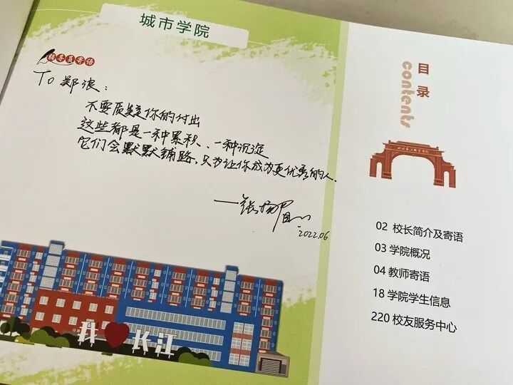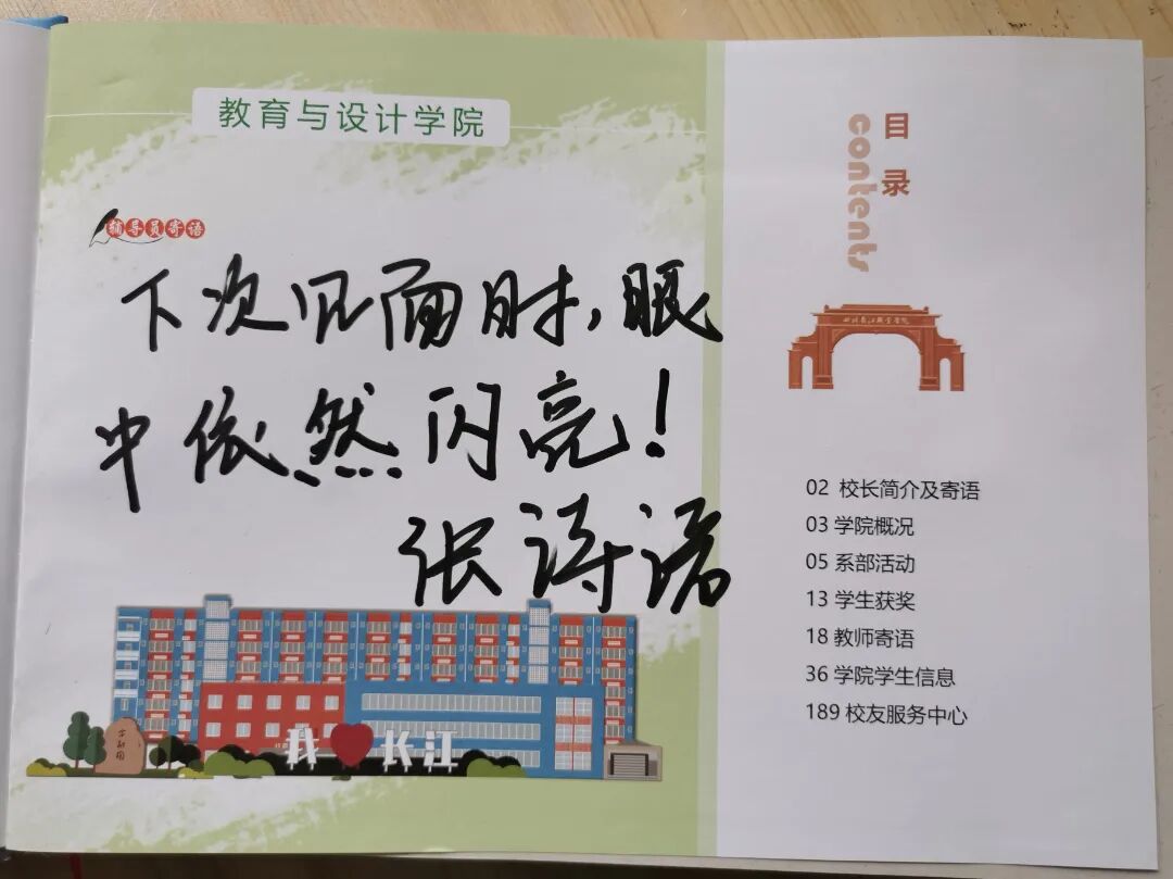 始于金秋,终于盛夏又是一年毕业季。为扎实做好毕业生教育工作,营造温馨、和谐的毕业氛围,培养毕业生爱国爱校的情怀,鼓励毕业生放飞梦想、展翅翱翔。毕业班辅导员通过毕业生纪念册,以手写寄语的方式为毕业生们送上祝福。