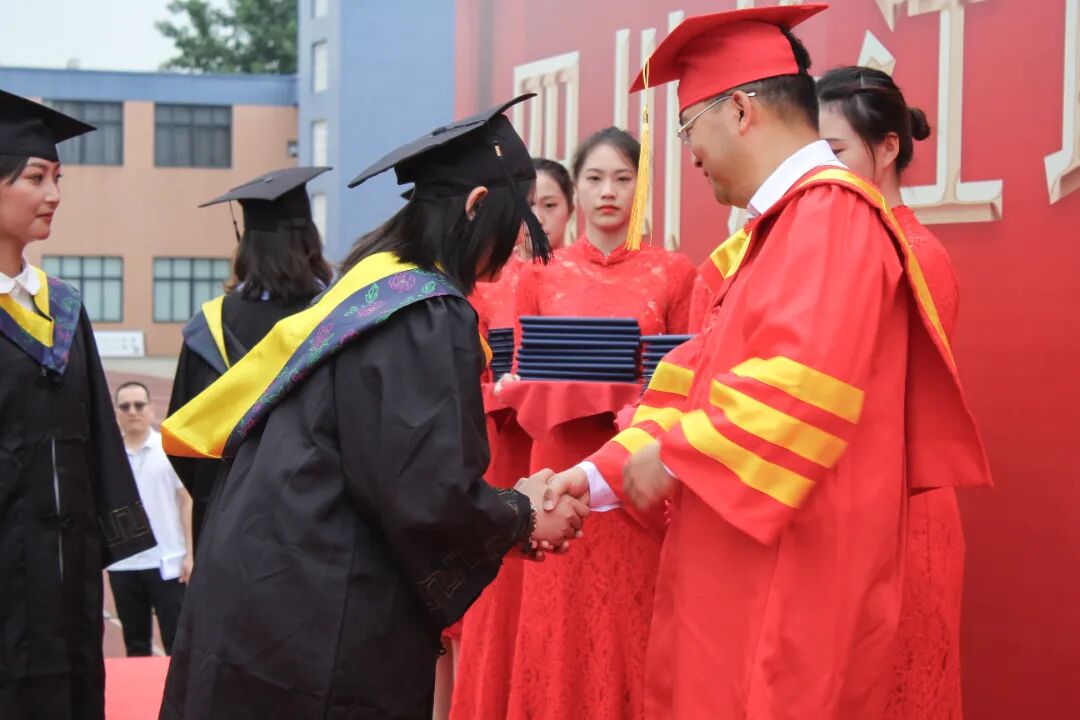 韩虎校长表示:努力和奋斗的过程,一定会遇到许多困难和挑战。你要做的是积极勇敢的行动起来,相信自己,改变自己,不要害怕失败。作为毕业生,你们有责任将所学致用,做一个对自己勇敢,对家庭负责,对社会有贡献的人;你们有责任坚持各种品质——理解和包容,坚守与承担——推至身边更多的人;你们有责任带着青春的激情和远大的理想去拥抱这个世界。