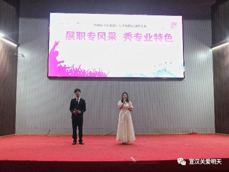 在校园文化解说赛段,航高服务专业部的罗意老师清唱校歌开讲,形式新颖;学前教育专业部的黄兰兰同学声音甜美、落落大方。随后,校团委委员胡彬彬作为学校专业讲解员,上台与选手们交流解说经验。在第二轮专业介绍中,学前教育专业部的芦敬老师与艺术专业部的孙萍同学声情并茂、表现优异,赢得评委们的一致肯定。才艺展示环节,不论是传统的歌舞表演还是茶艺、快板、手语操,都让观众眼前一亮。