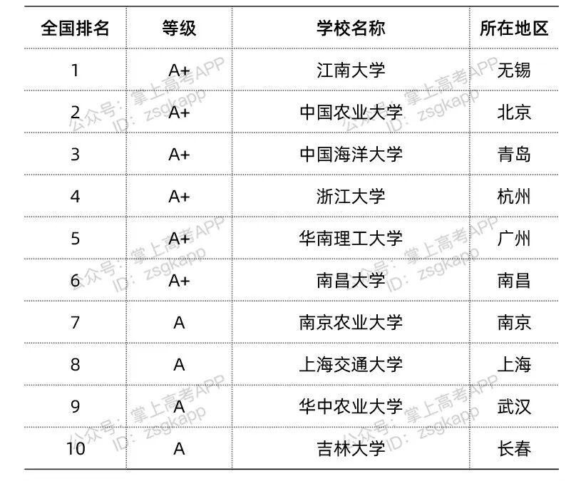 在2021年软科中国大学专业排名榜单中,共有115所院校的食品科学与工程专业上榜。Top 10 院校排名如下: