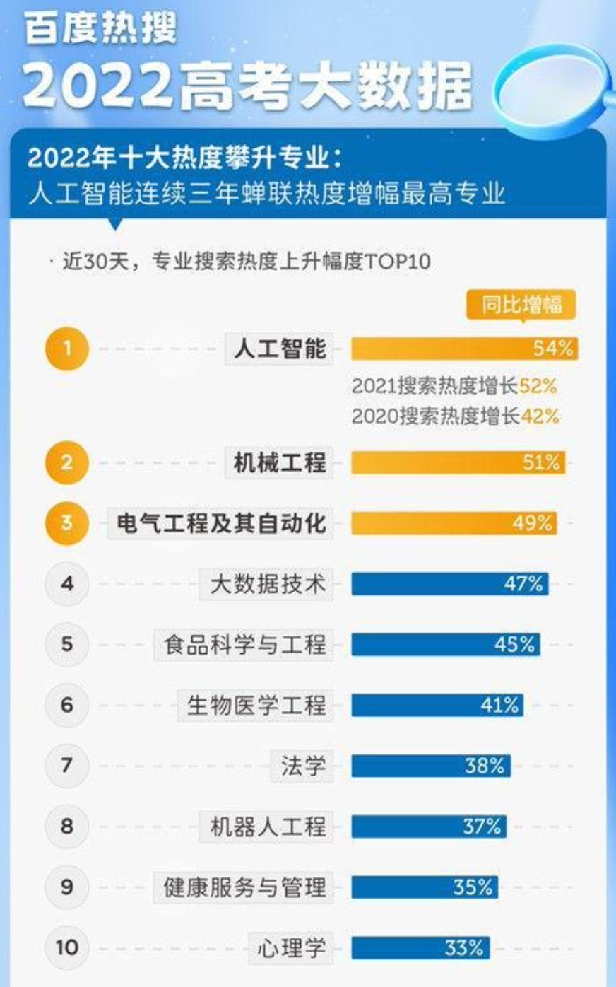 以上2022年百度热搜专业,仅仅代表了人们的搜索和关注度,不构成高考志愿填报指导,仅供参考。