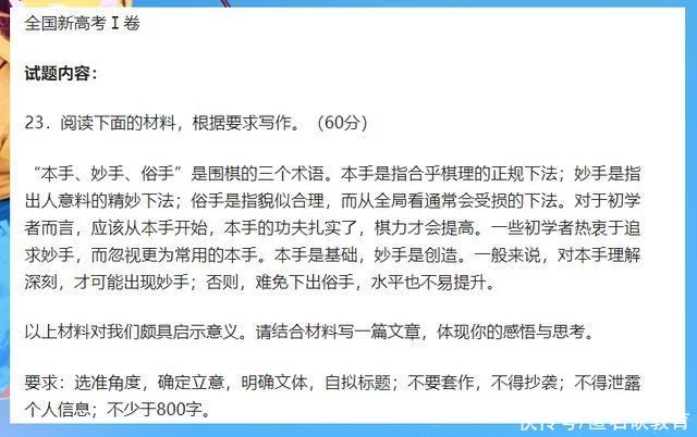再来看看新高考I卷的作文题目,和甲卷差不多,但是没有甲卷难,不过也需要学生深度思考后才可以找到方向,重点是意义。