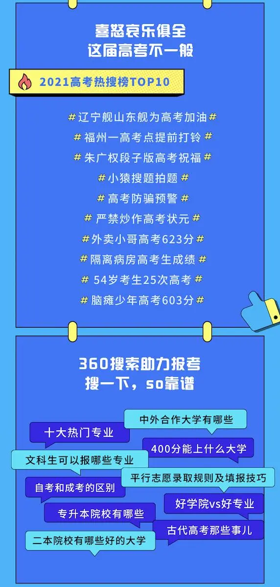 近日,全国各地高校开始陆续公布录取分数线,考生和家长的高考相关信息搜索需求也随之上涨。为此,360搜索携手央广网,针对考生和家长关心的话题,发布了《360搜索2021报考大数据报告》(以下简称报告),帮助广大考生和家长及时了解今年高考报考热点。据悉,青云守护计划,是360搜索推出的,通过高考信息服务、高考院校库、AI 报考院校pk 等工具和服务,为广大考生专门提供的全链路保驾护航计划,具有一定的专业性和针对性。