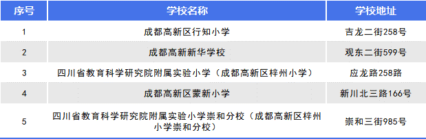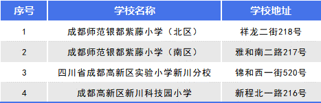 尤其值得注意的是,高新区此次多校划片录取分两个批次,第一批次涉及成都高新区行知小学、成都高新新华学校、四川省教育科学研究院附属实验小学(成都高新区梓州小学)、成都师范银都紫藤小学(北区)、成都师范银都紫藤小学(南区)5所学校,涵盖A、B两个学区。