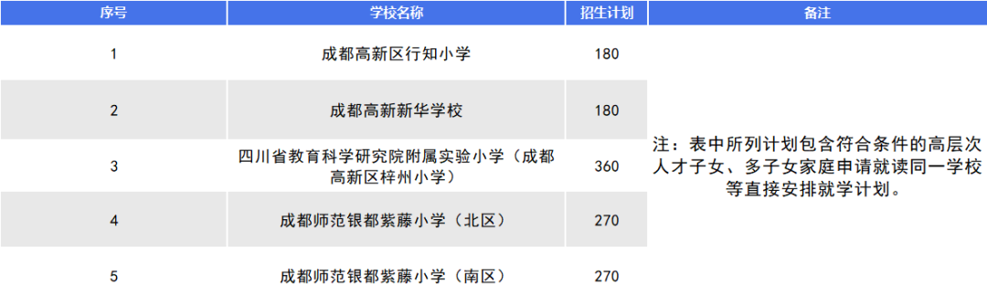 上述计划均包含符合条件的高层次人才子女、多子女家庭申请就读同一学校等直接安排就学计划。