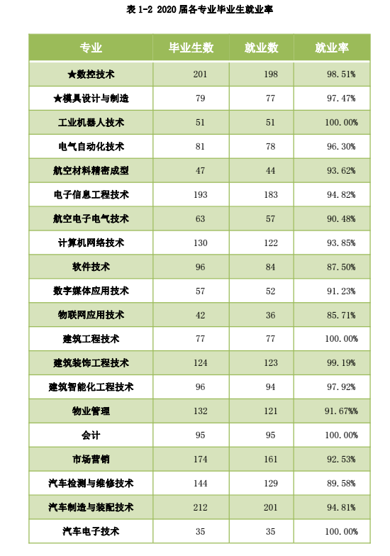 2020 届毕业生专业数量共 30 个, 其中航空军工特色专业 14 个, 航空军工特色专业毕业生 2087 人, 占毕业生总数 55.52%, 学校服务航空、 服务国防的办学定位更加明确。