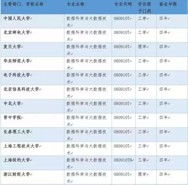 从两次获批的数据科学与大数据技术专业名单中可以看出,该专业学制都为四年,授予工学学位或理学学位。