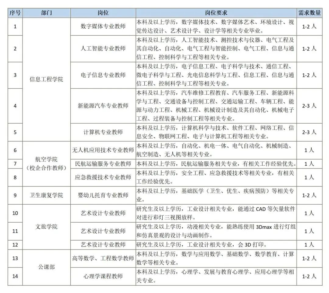 自贡职业技术学校2022年第二批专任教师招聘岗位一览表